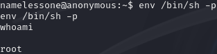 /usr/bin/env에서 env /bin/sh -p를 이용하면 root권한을 습득할 수 있는것으로 정보를 얻었습니다. 이제 이를 이용해보면