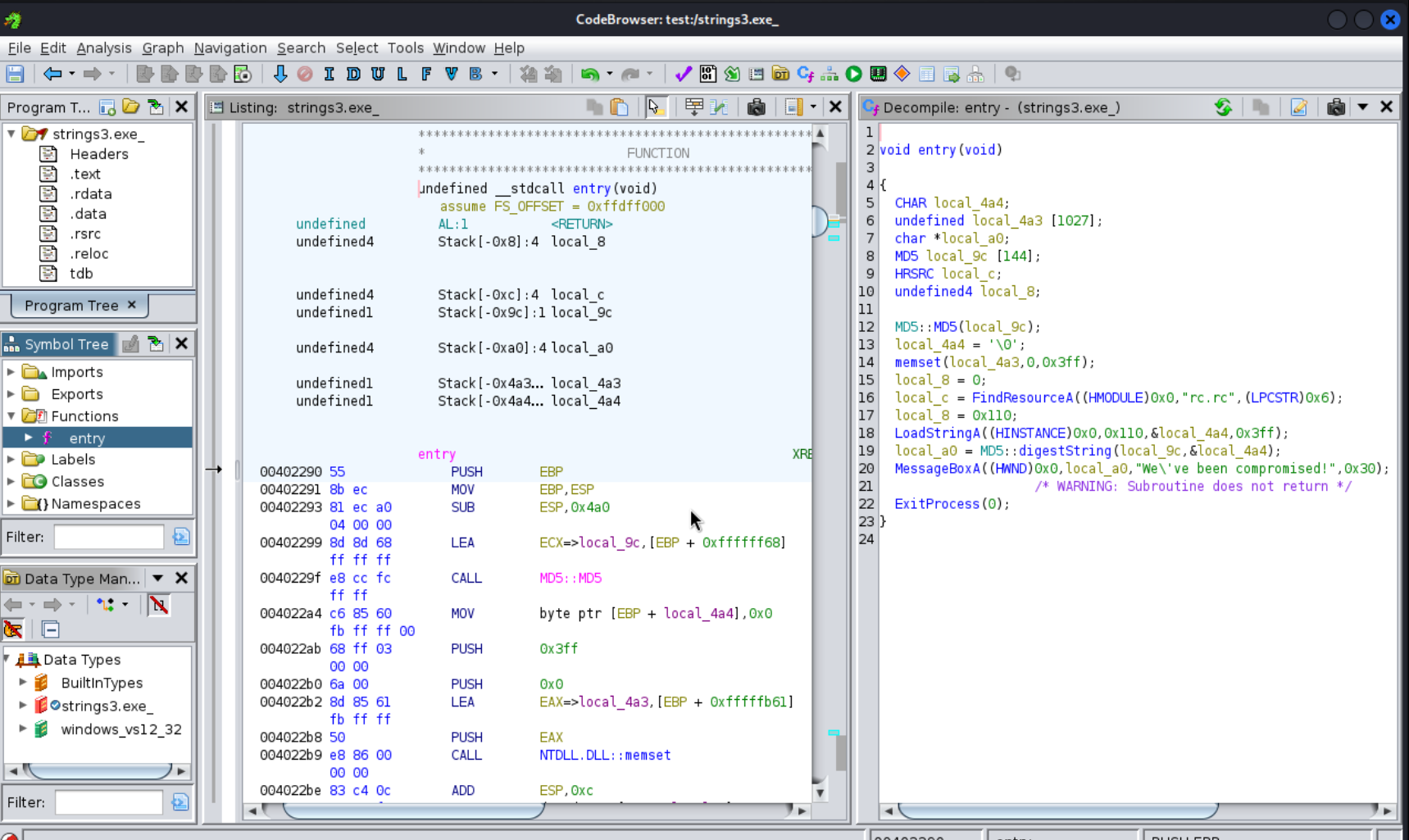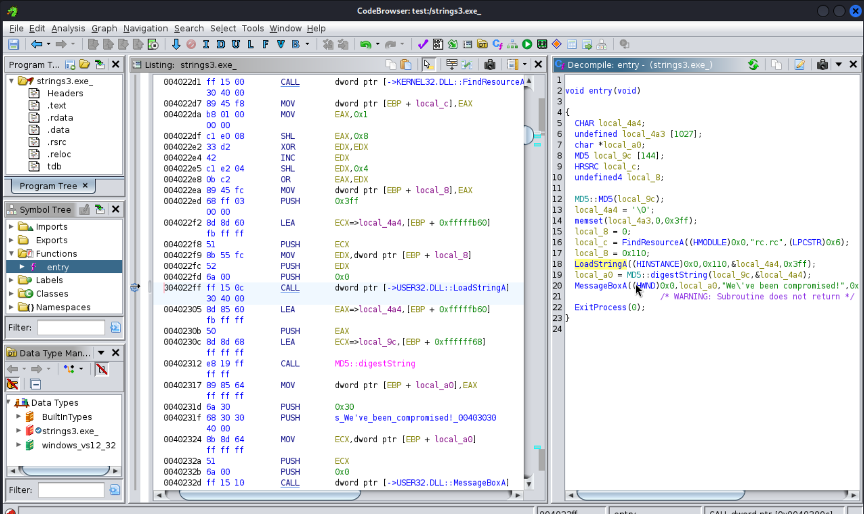 목표 : strings3.exe_ 실행 파일이 출력하는 MD5 해시의 원본 문자열 플래그를 찾는 것입니다.