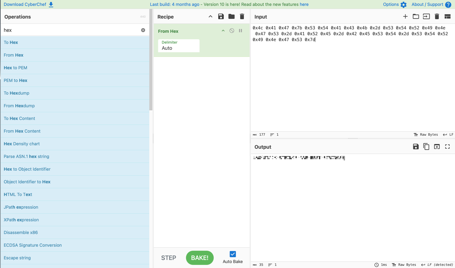 따라서 local_2c 부터 local_9까지의 값을 cyberChef를 통해 16진수를 변환하게 되면 challenge 2의 flag가 됩니다.