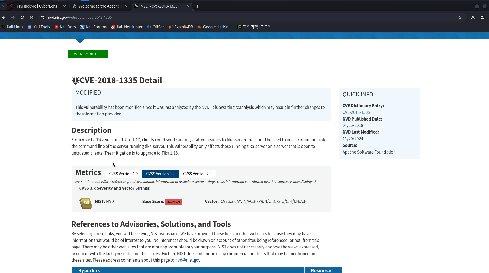 이제 해야 할 일은 해당 버전에 CVE가 존재하는지 확인해봅시다.