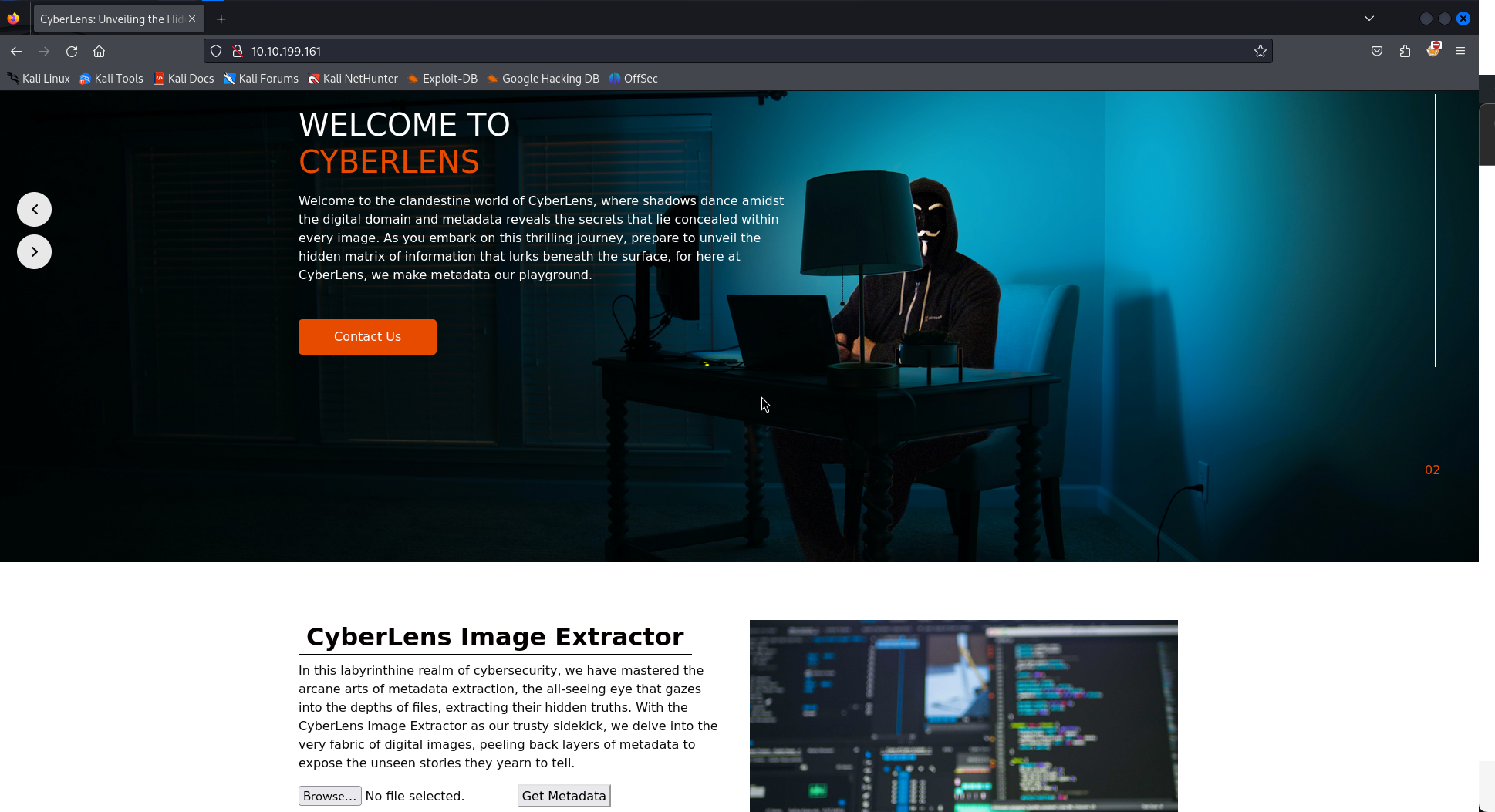 보시면 CyberLens Image Extractor라는 service를 제공하고 있고, file을 upload할 수 있는 기능을 제공하고 있습니다.