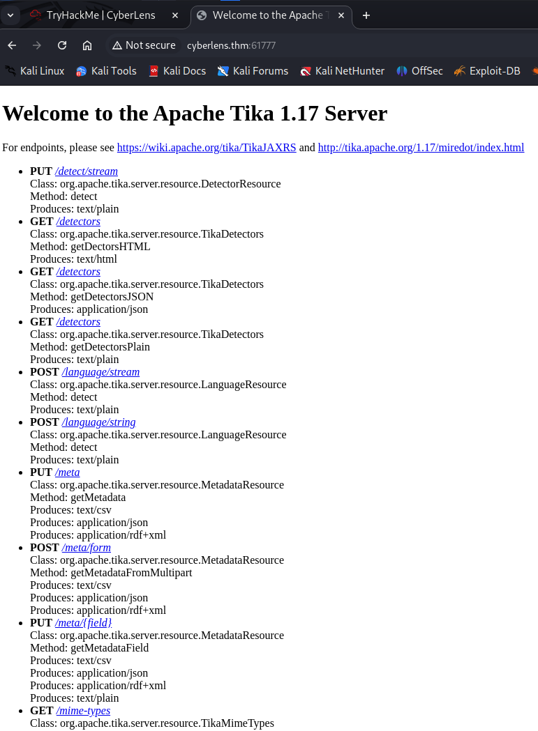 해당 서버는 Apache Tika 1.17버전으로 구성되어 있습니다.