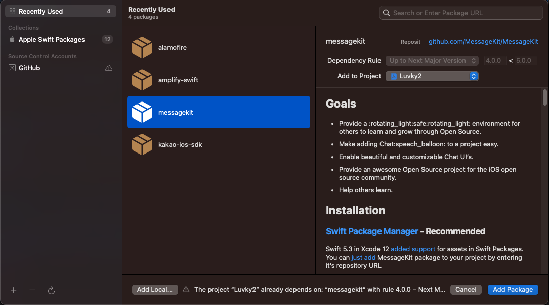 이를 위해서는 SPM으로 message kit라는 package를 download 해야 합니다.
