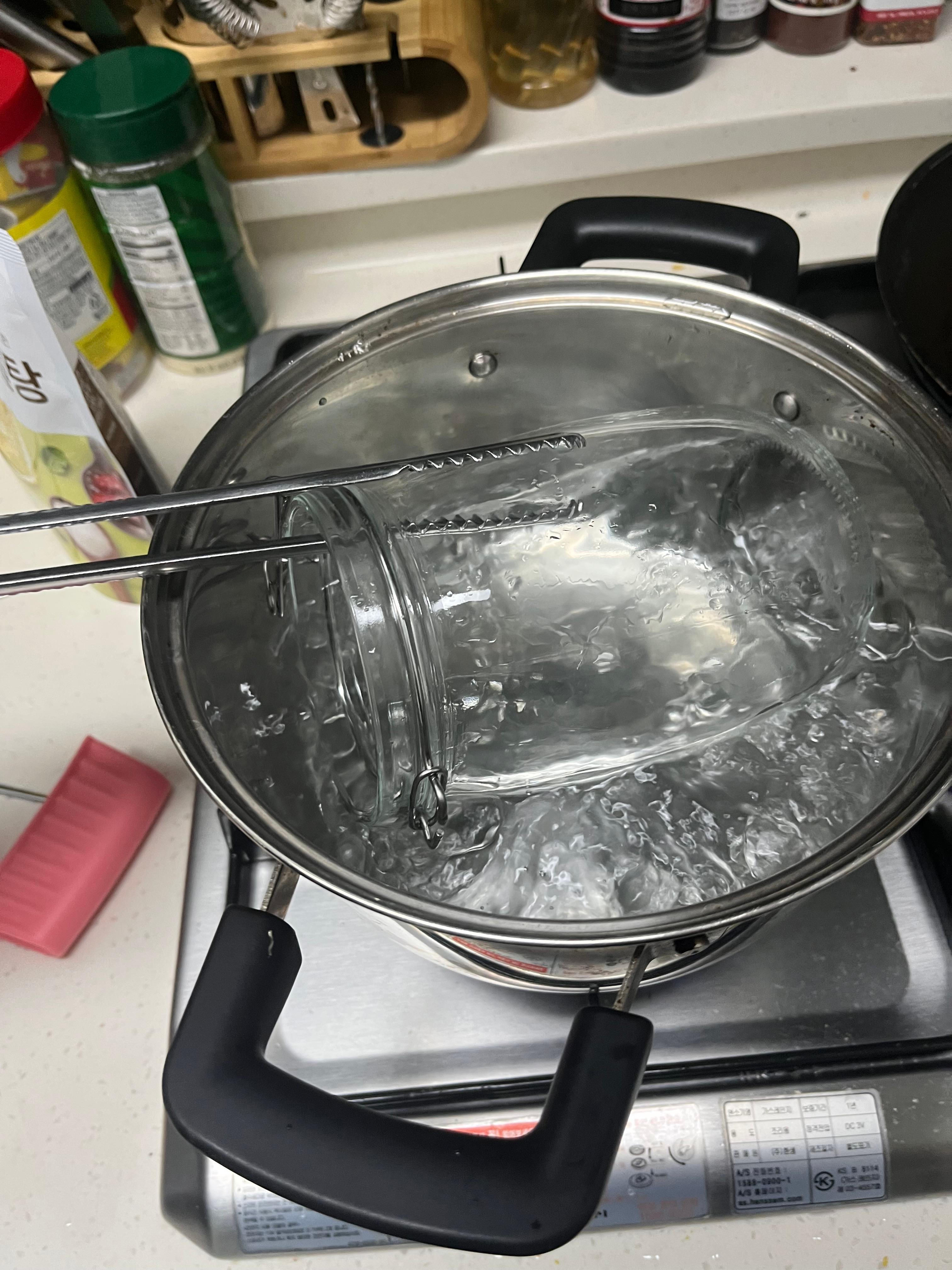 첫번째로 구매한 용기에 대해 열탕처리를 하여 병을 소독해줍니다.