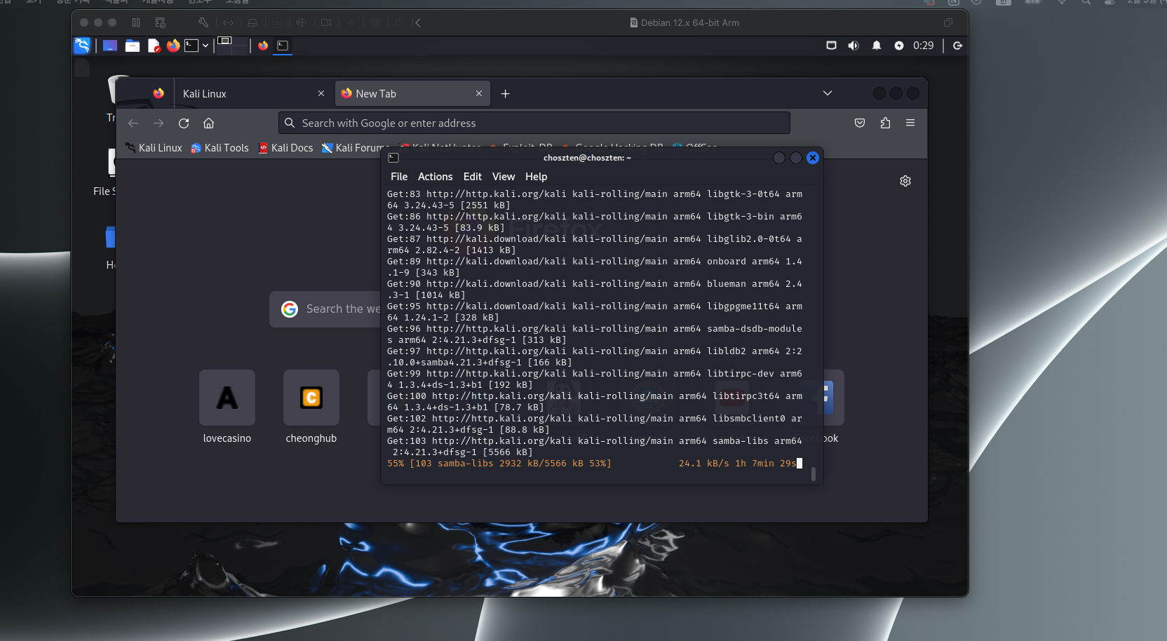 문제 풀다가 잠깐 친구 침대에서 쉬고 있는데 vmware 속 kali linux가 자기 혼자 뽀삐뽀비뽀 뽀삐뽀 하면서 맛이 갔습니다.