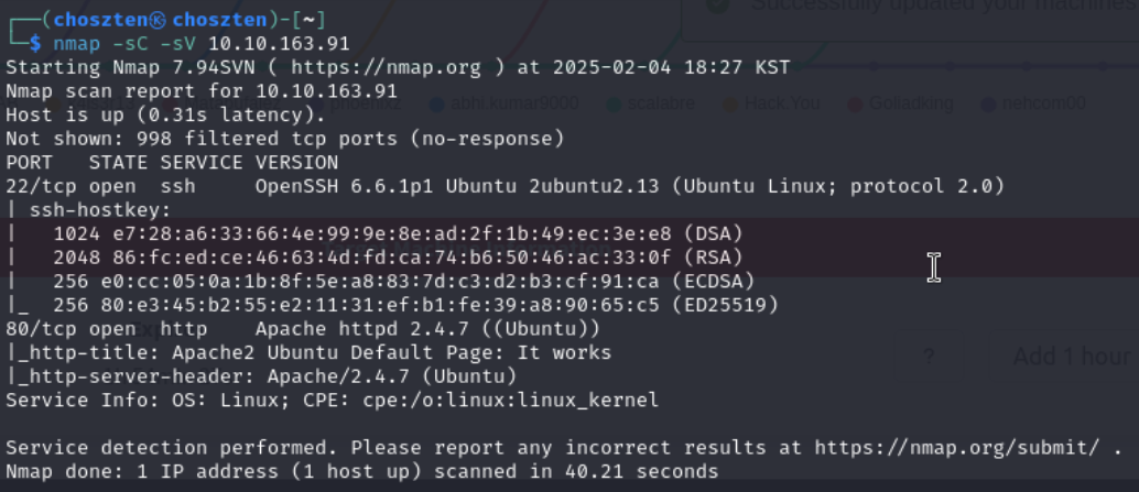 우선 nmap을 이용하여 targetIP를 대상으로 scan을 진행