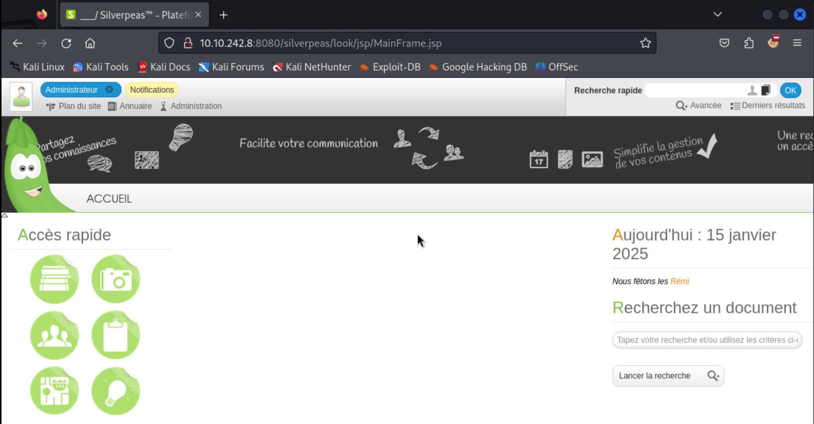 http://10.10.242.8:8080/silverpeas/defaultLogin.jsp 사이트에 연결이 되게 됩니다.