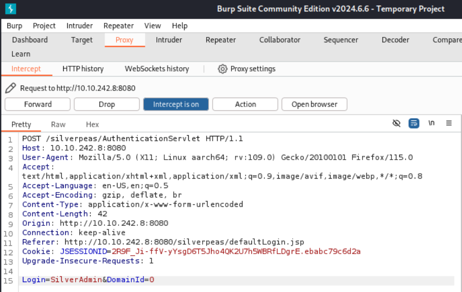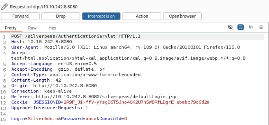 따라서 이제 id는 기본 자격증명으로 아이디를 SilverAdmin로 설정하고 password omitting을 이용해봅시다.